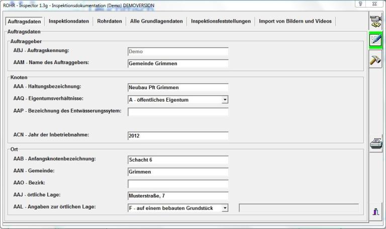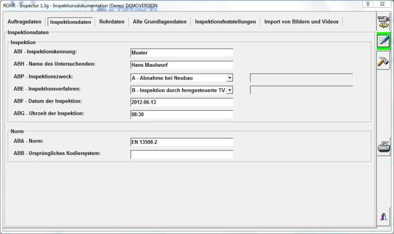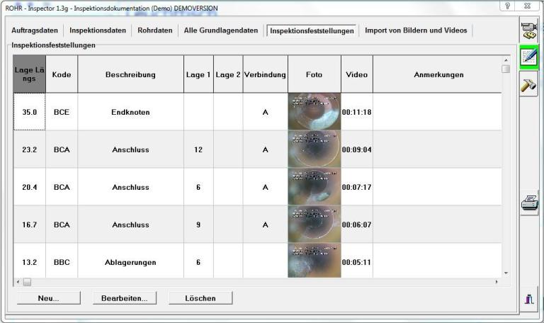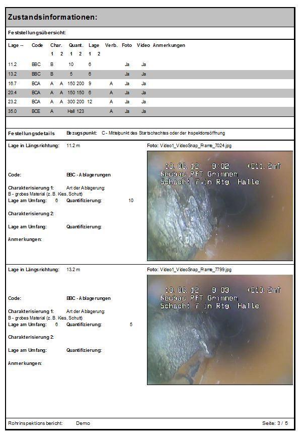 Inspection-canalisations selon DIN 13508/2 aussi bien directement ou pendant l'inspection ou plus tard du matériel des images ou de vidéos enregistrés.