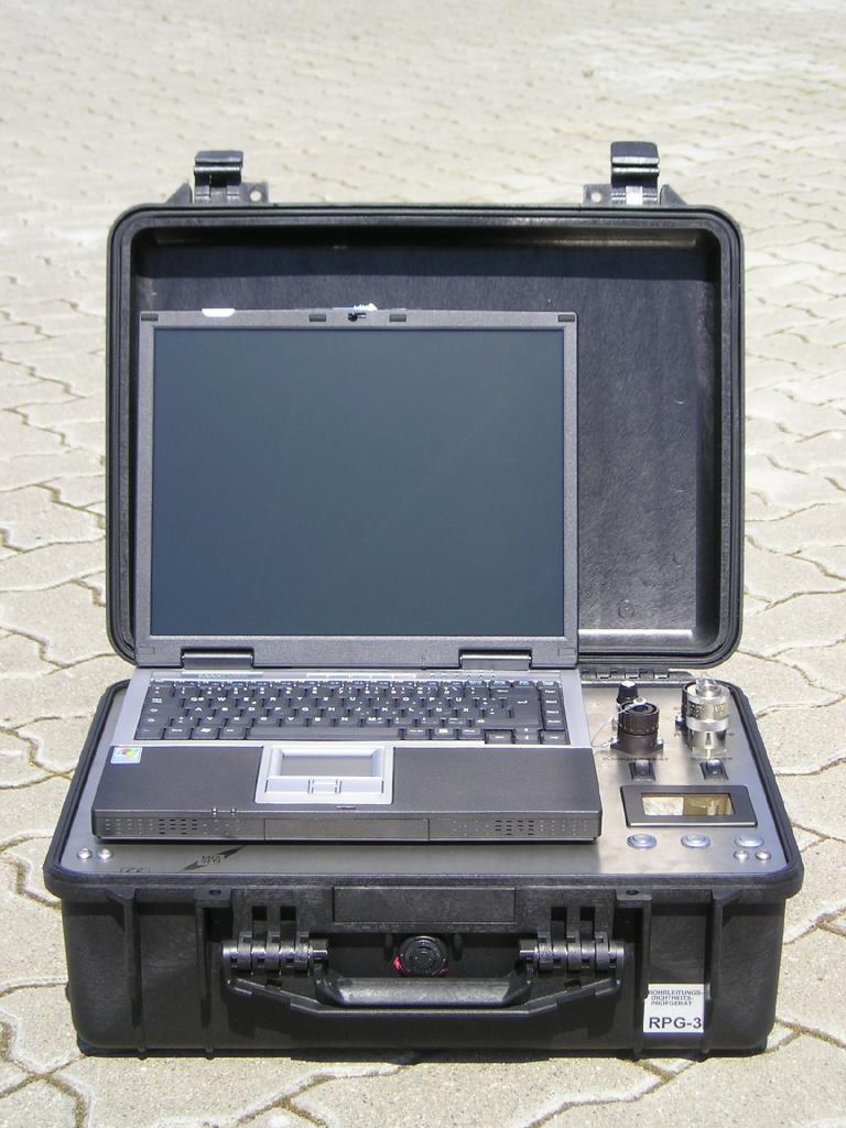 Contenu de la livraison: Mallette de mesure RPG-3 avec ordinateur de test intégré, logiciel de test et manuel, câble de raccordement 230 V AC / 12 V DC