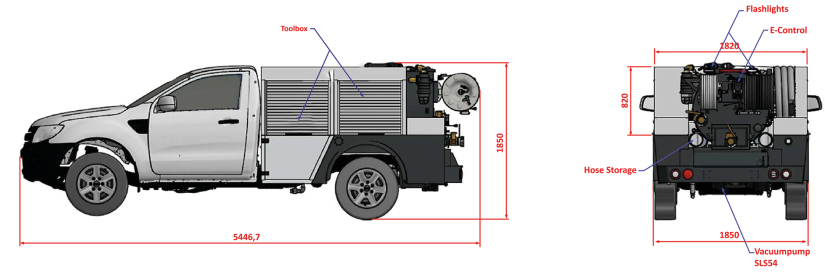 Questo nuovo veicolo di aspirazione/spurgo urbano di Rioned è stato sviluppato per l'uso in ambienti con soffitti di altezza ridotta e strade urbane strette. Con un'altezza inferiore a 1,85 m e la potente trazione integrale, questo veicolo di aspirazione/spurgo può essere utilizzato anche in luoghi di difficile accesso.