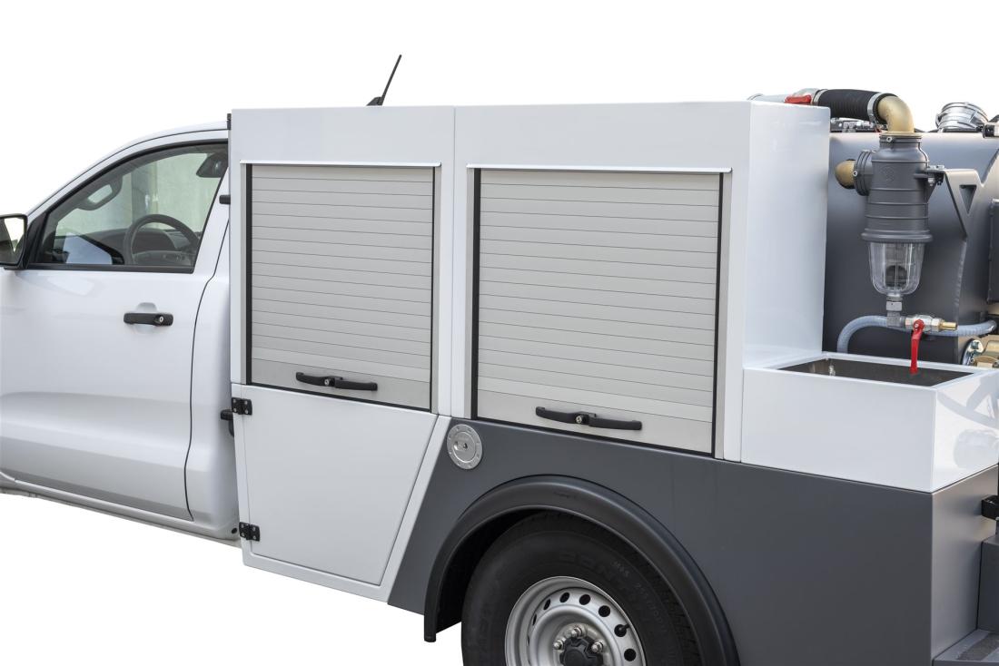 Cassette degli attrezzi in alluminio con sportelli bloccabili sul lato conducente e passeggero |