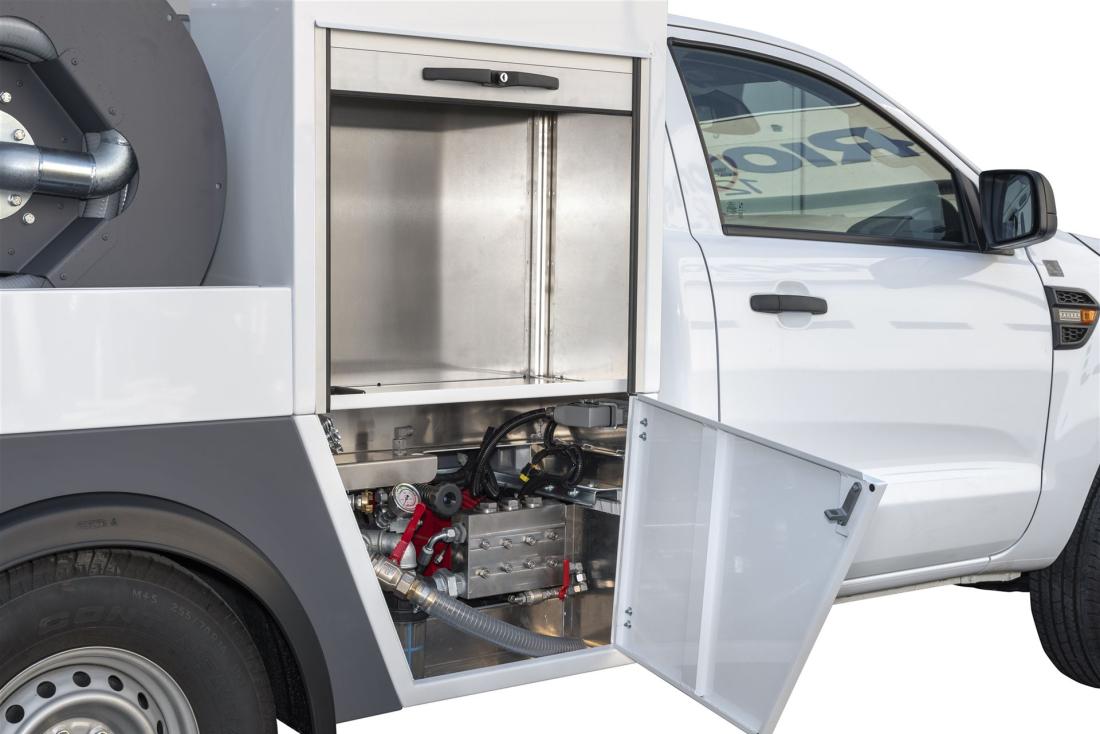 Questo nuovo veicolo di aspirazione/spurgo urbano di Rioned è stato sviluppato per l'uso in ambienti con soffitti di altezza ridotta e strade urbane strette. Con un'altezza inferiore a 1,85 m e la potente trazione integrale, questo veicolo di aspirazione/spurgo può essere utilizzato anche in luoghi di difficile accesso.