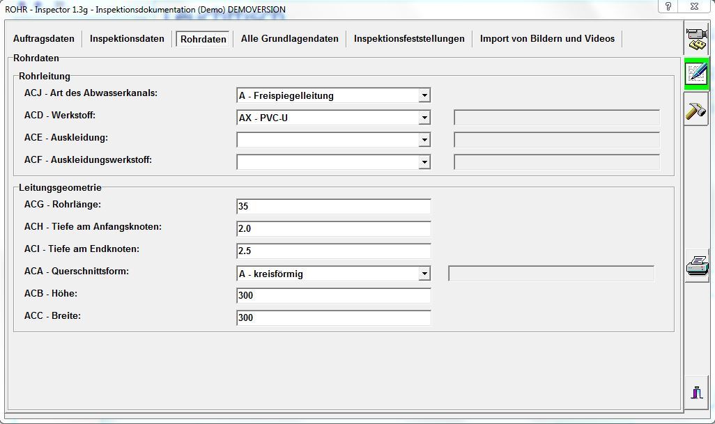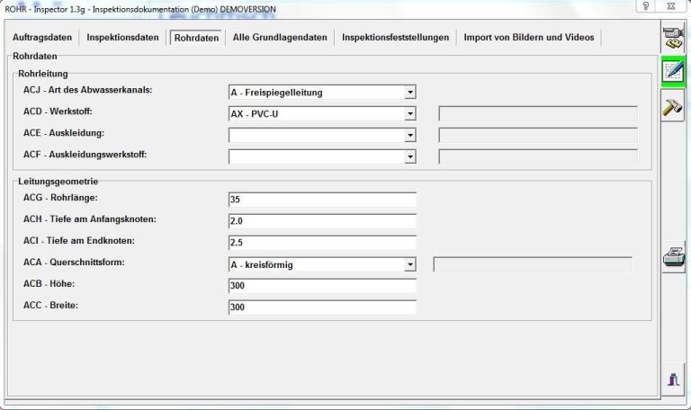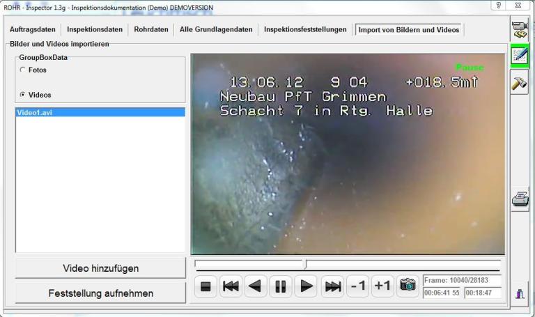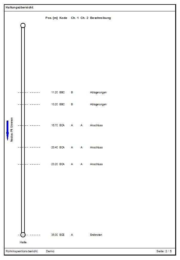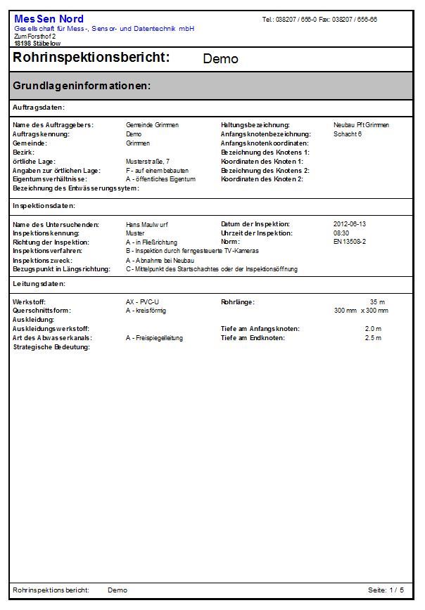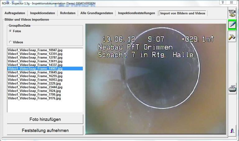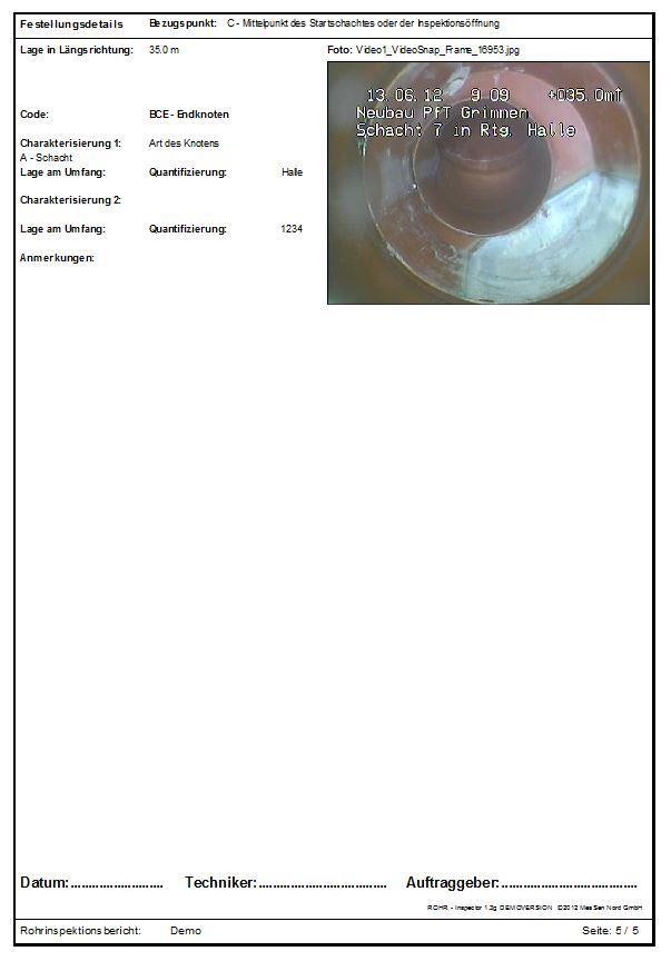 Ispezione delle condutture in conformità con la norma DIN 13508/2, sia direttamente durante l'ispezione che successivamente a partire da immagini e materiale video memorizzato.