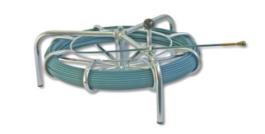 Sonda con asta in fibra di vetro DN 6,0 mm con guaina in polipropilene, completa di manicotto iniziale/finale M6 e testa di trazione M6 con occhiello. Aspo in acciaio zincato a disegno orizzontale con diametro del cestello di 550 mm.