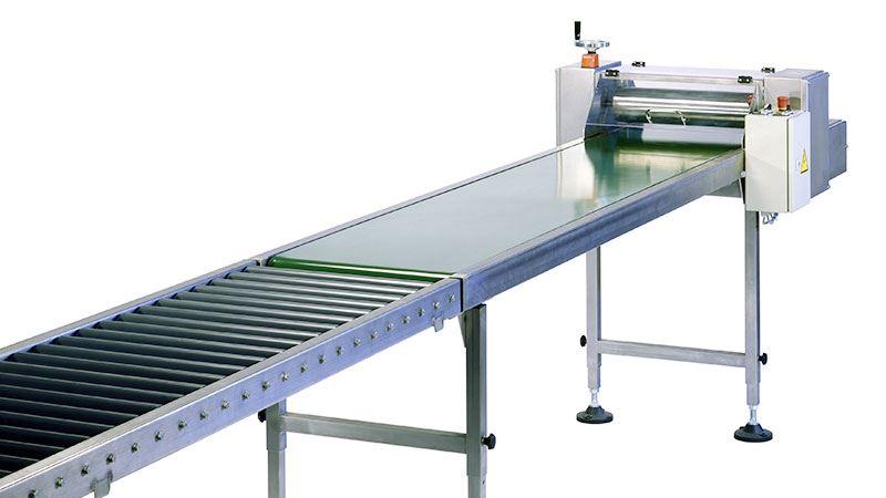 Girando la manovella, un nastro trasportatore, e quindi il liner adagiato su di esso, viene passato attraverso i rulli di impregnazione.