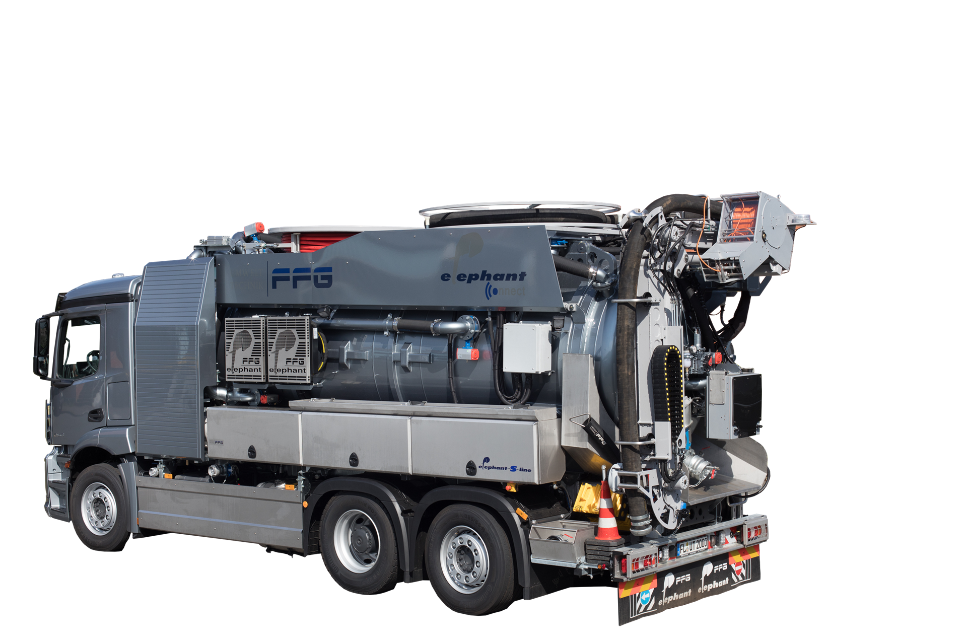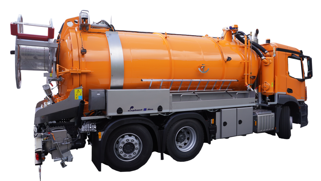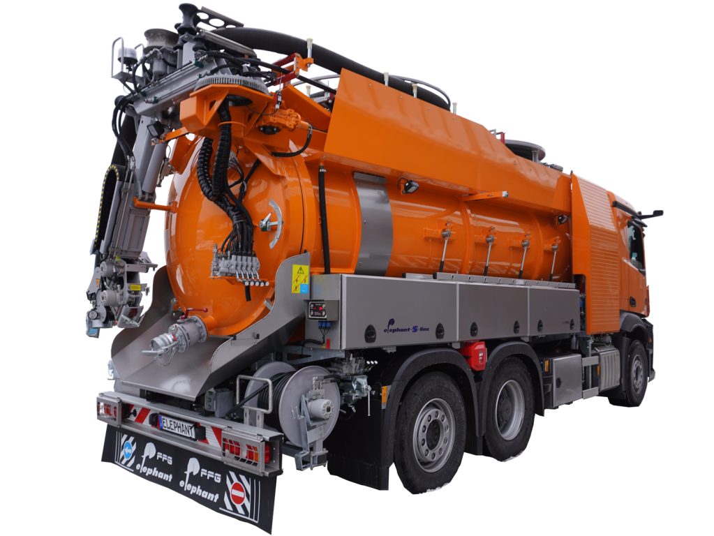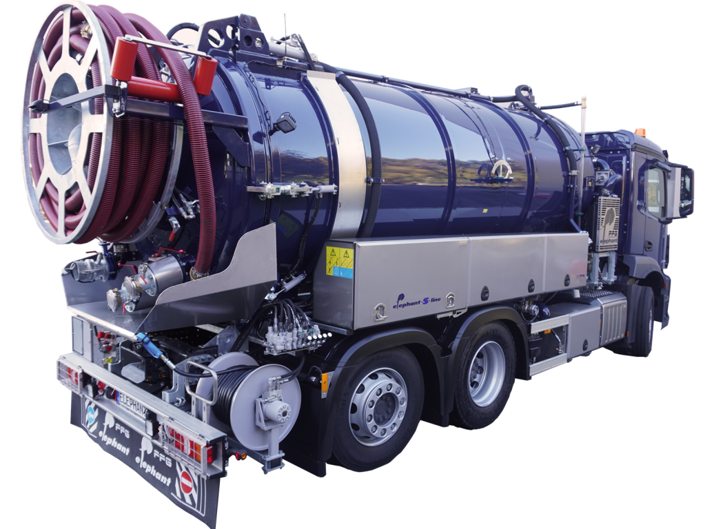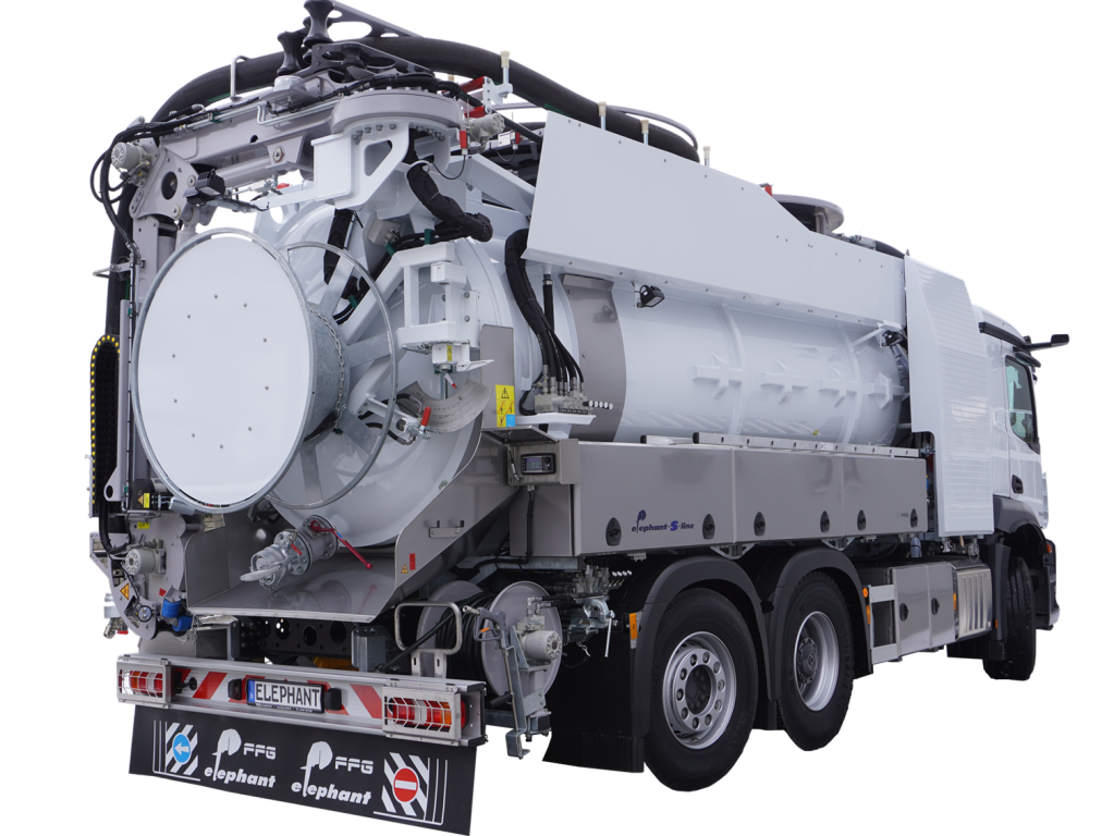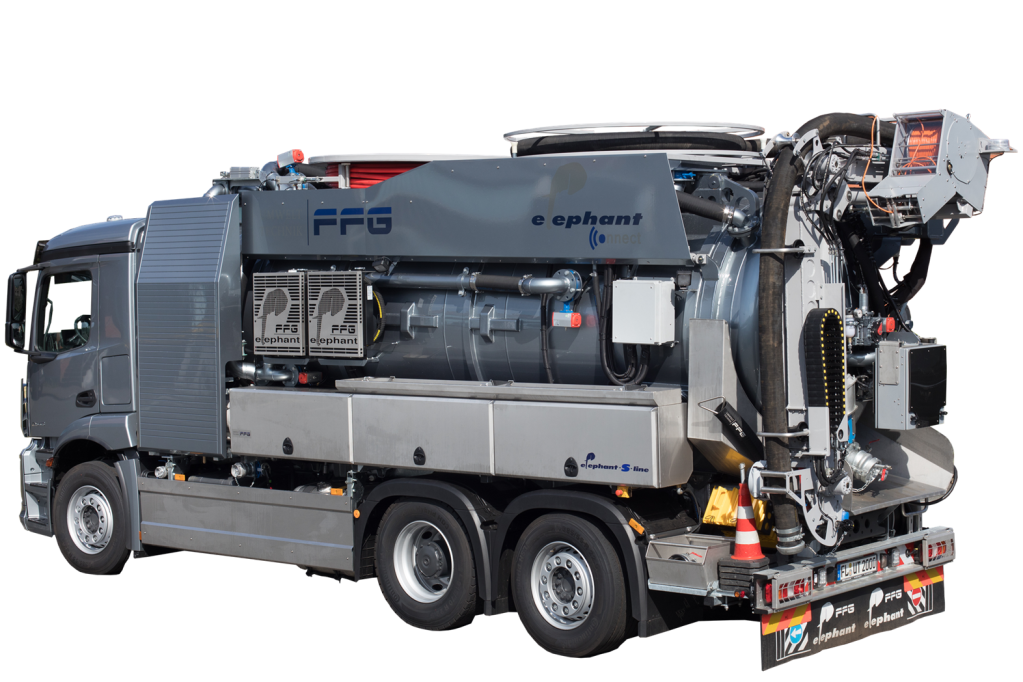 I veicoli della linea Elephant S di Flensburg dell'azienda FFG Umwelttechnik GmbH & Co. KG sono modelli preconfigurati, realizzati per essere integrati come veicoli per l'aspirazione dei fanghi e per la pulizia delle fognature.