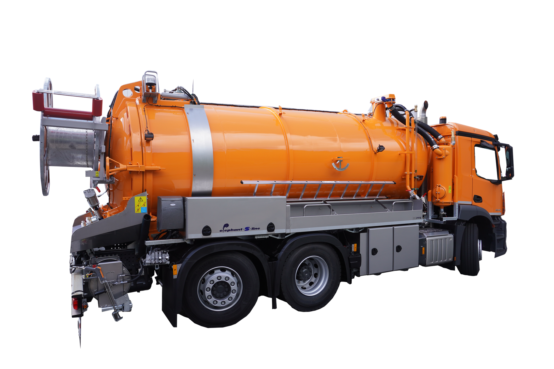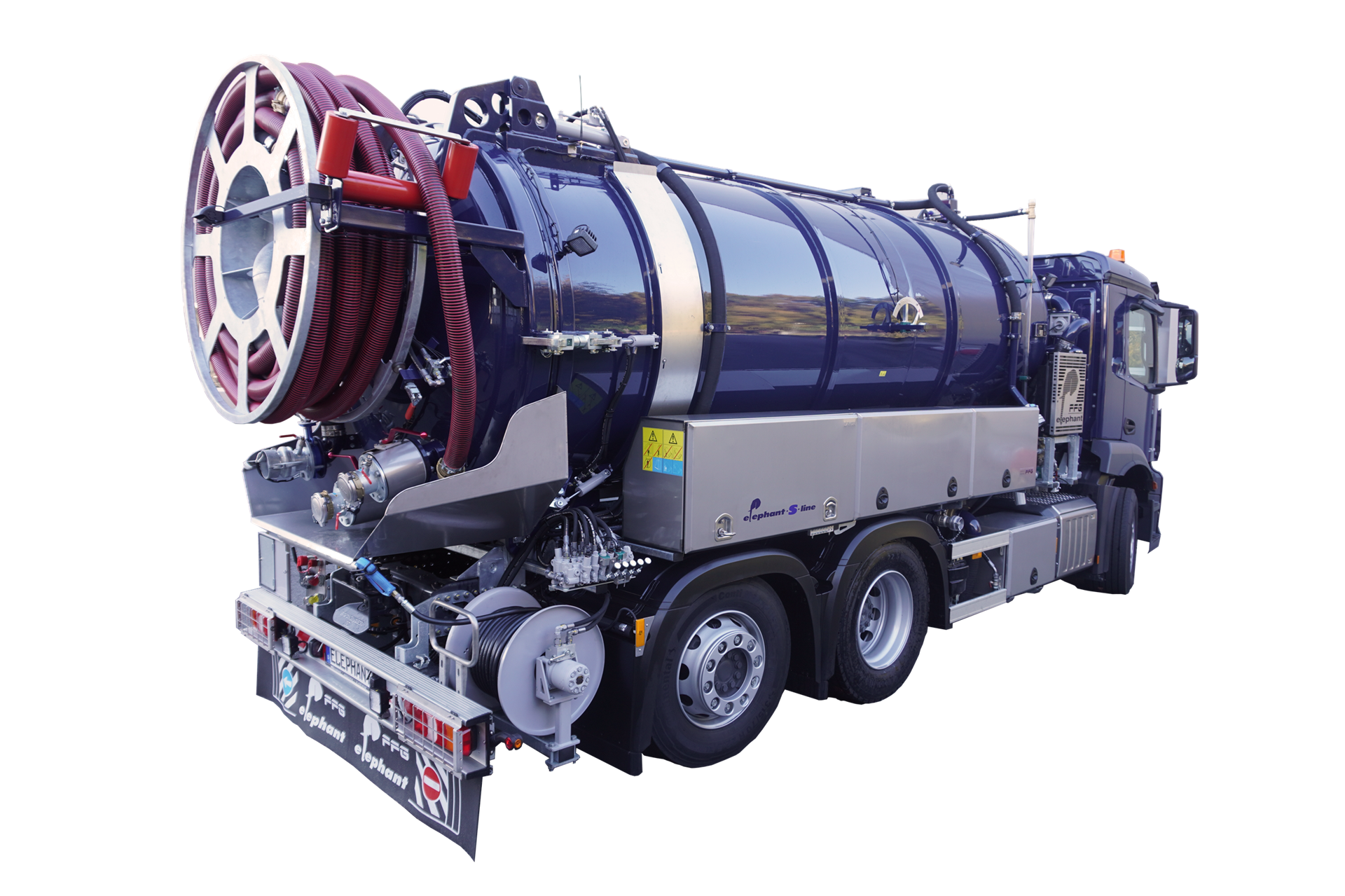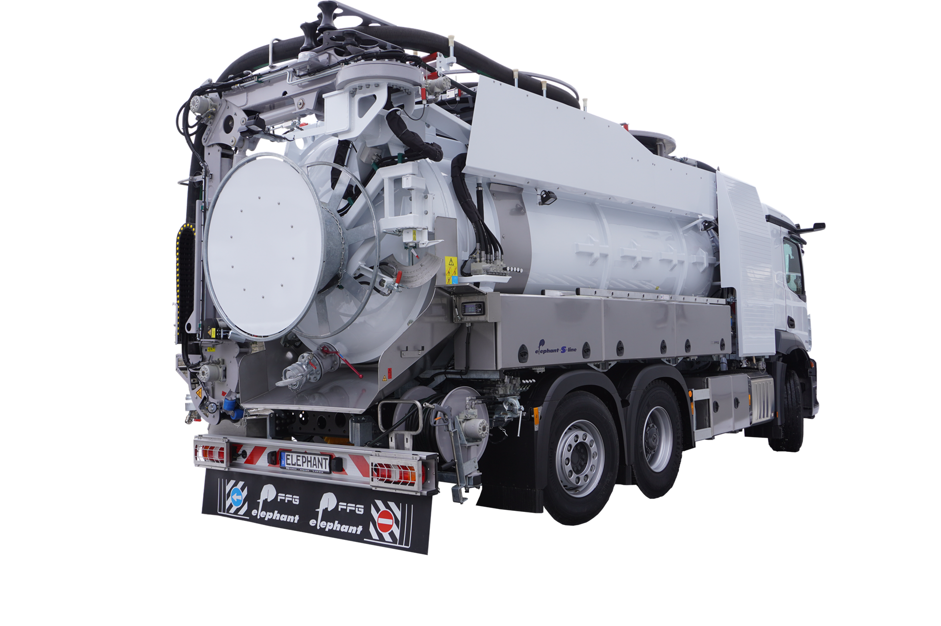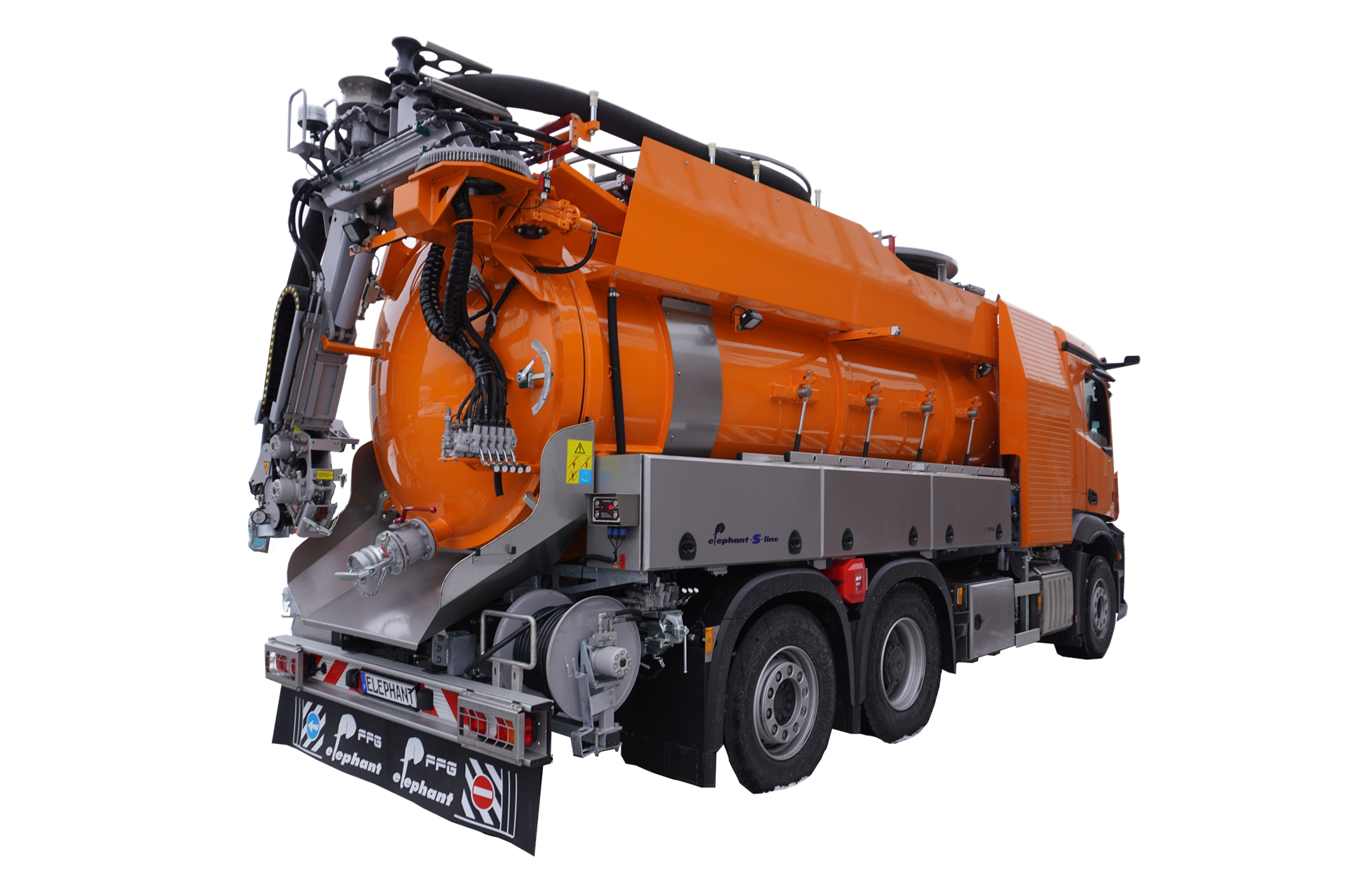 I veicoli della linea Elephant S di Flensburg dell'azienda FFG Umwelttechnik GmbH & Co. KG sono modelli preconfigurati, realizzati per essere integrati come veicoli per l'aspirazione dei fanghi e per la pulizia delle fognature.