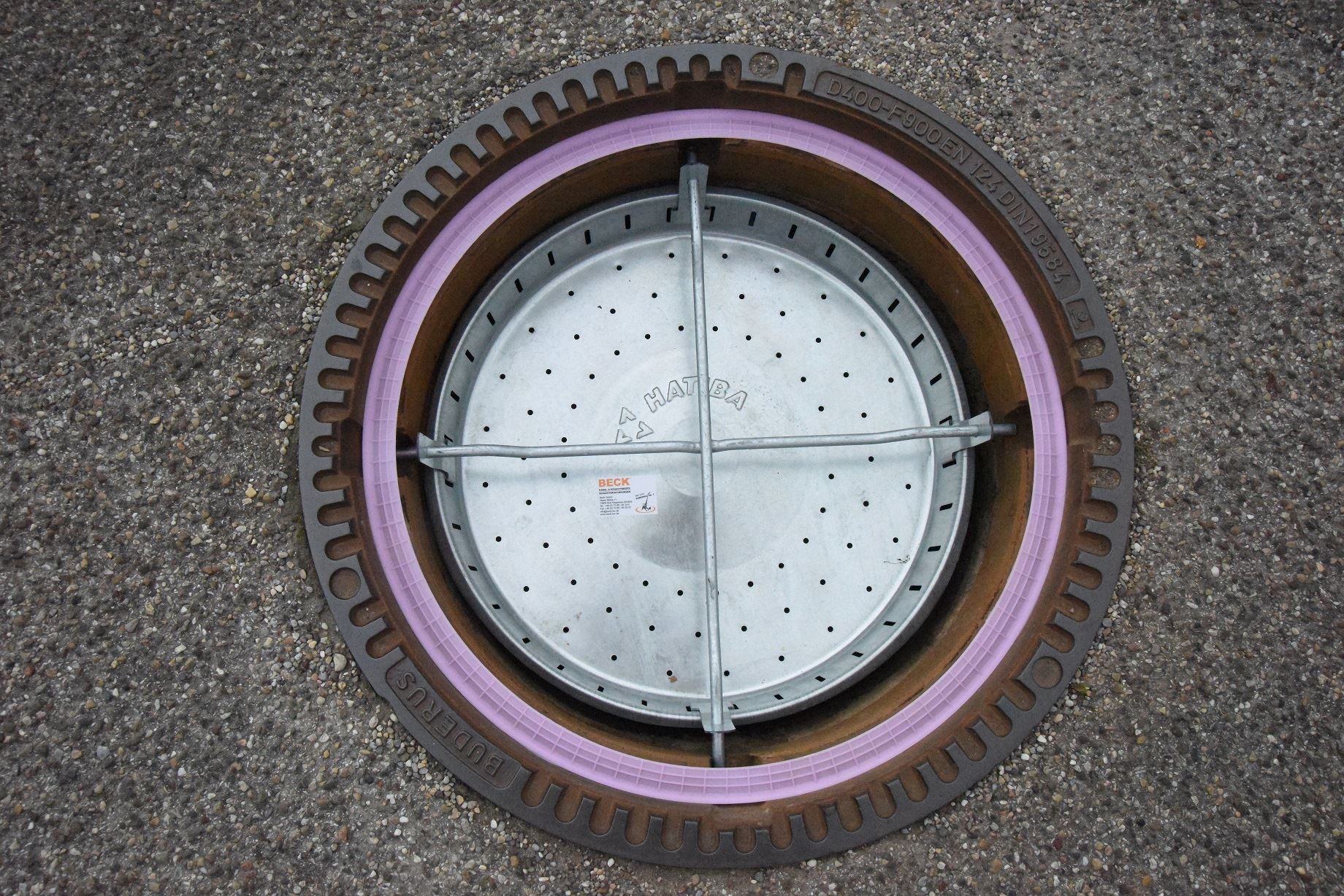 Il bordo di supporto esterno smussato centra il coperchio e impedisce lo spostamento orizzontale. In questo modo il chiusino ha un appoggio su tutta la superficie senza possibilità di movimento. Si evitano i fastidiosi rumori di tintinnio. Inoltre, una distribuzione uniforme del carico protegge il telaio del pozzetto e il chiusino e ne aumenta la durata.