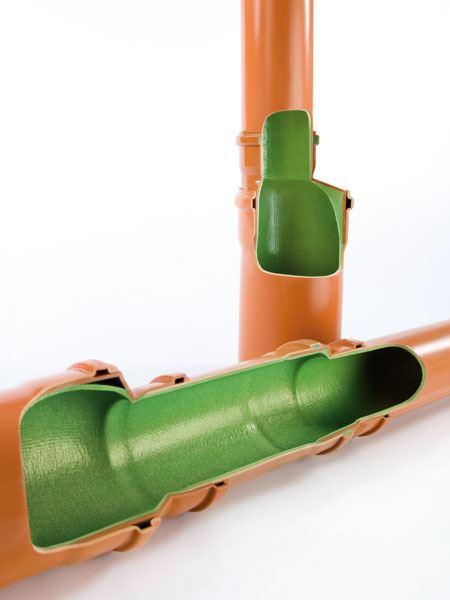 Der neue BRAWOLINER 3D wurde speziell für große Dimensionsänderungen oder mehrere Dimensionssprünge in Folge entwickelt. In den Nennweiten von DN 100 bis DN 150 passt sich der nahtlos gestrickte Liner jedem Rohrdurchmesser optimal an und überzeugt mit einem hervorragenden Einbauergebnis. Das Geheimnis des Liners ist die einzigartige, extrem flexible Polyester-Schlingenkonstruktion, die eine enorme Querdehnung ermöglicht. Genauso wie der bewährte BRAWOLINER ist auch der neue 3D-Liner bis 90° bogengängig. Dies macht den BRAWOLINER 3D zu einer optimalen Sanierungslösung für schwierige Kanalisationssysteme.